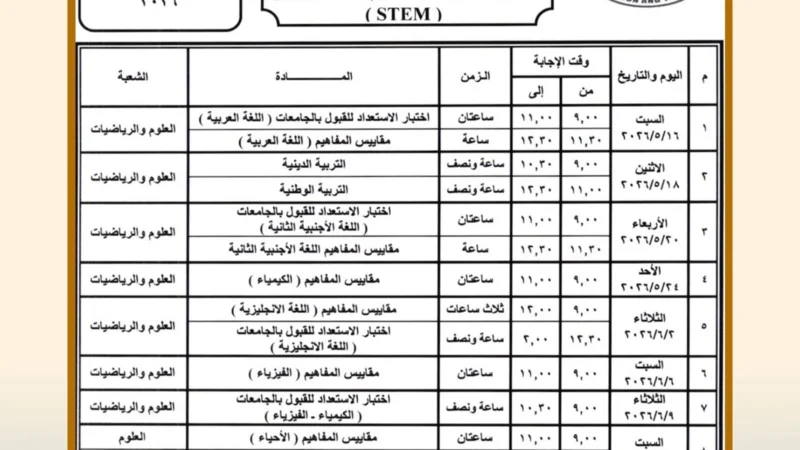 اعتماد جدول امتحانات الثانوية العامة 2026.. وانطلاقها 21 يونيو اعتمد محمد عبد اللطيف، وزير التربية...