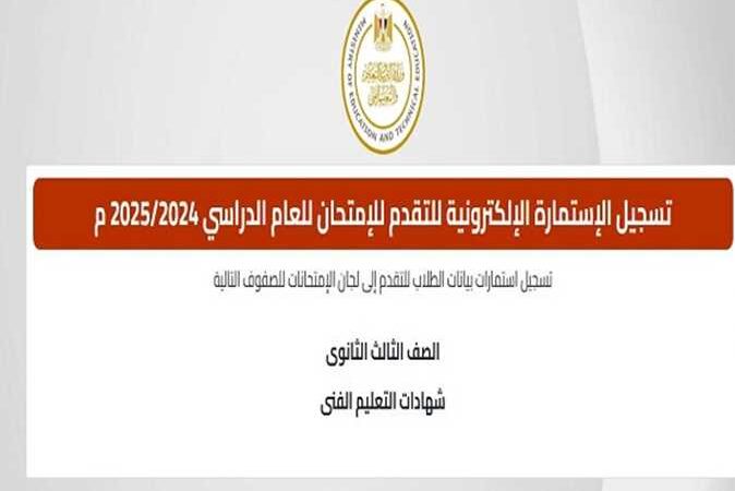 أتاحت وزارة التربية والتعليم والتعليم الفني رابطًا رسميًا لتسجيل استمارة التقدم لامتحانات الثانوية العامة، مؤكدة أن التسجيل يتم إلكترونيًا فقط عبر الموقع المخصص لذلك.